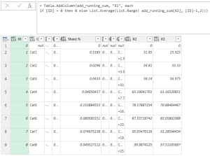 duplicate_col = Table.DuplicateColumn(add_running_avg, "X2", "X3"),