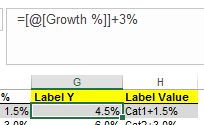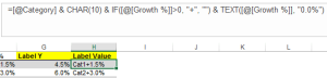 Can use CHAR(10) to add “new row” in label, “+” sign for positive, and custom number format using TEXT() function