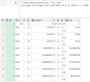 List.Sum(List.Range( sort_id[#"Share %"], 0, [ID]+1)) * 100),