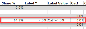 Once you built your solution for Mekko, with your list of categories, you can apply this macro, then delete it. Data label references remain after data refresh.